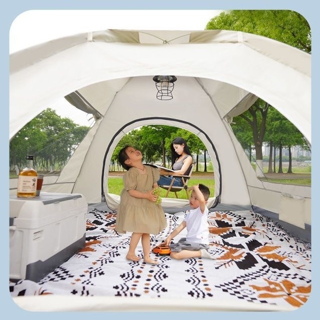 Sa dimenzijama približno 210 × 210 × 142 cm, pruža dovoljno prostora za 3 do 4 osobe ⛺, što ga čini odličnim izborom za kampovanje, izlete, odmor u prirodi ili festivale. Unutrašnjost je komforna i omogućava smeštaj kako osoba, tako i osnovne opreme.
