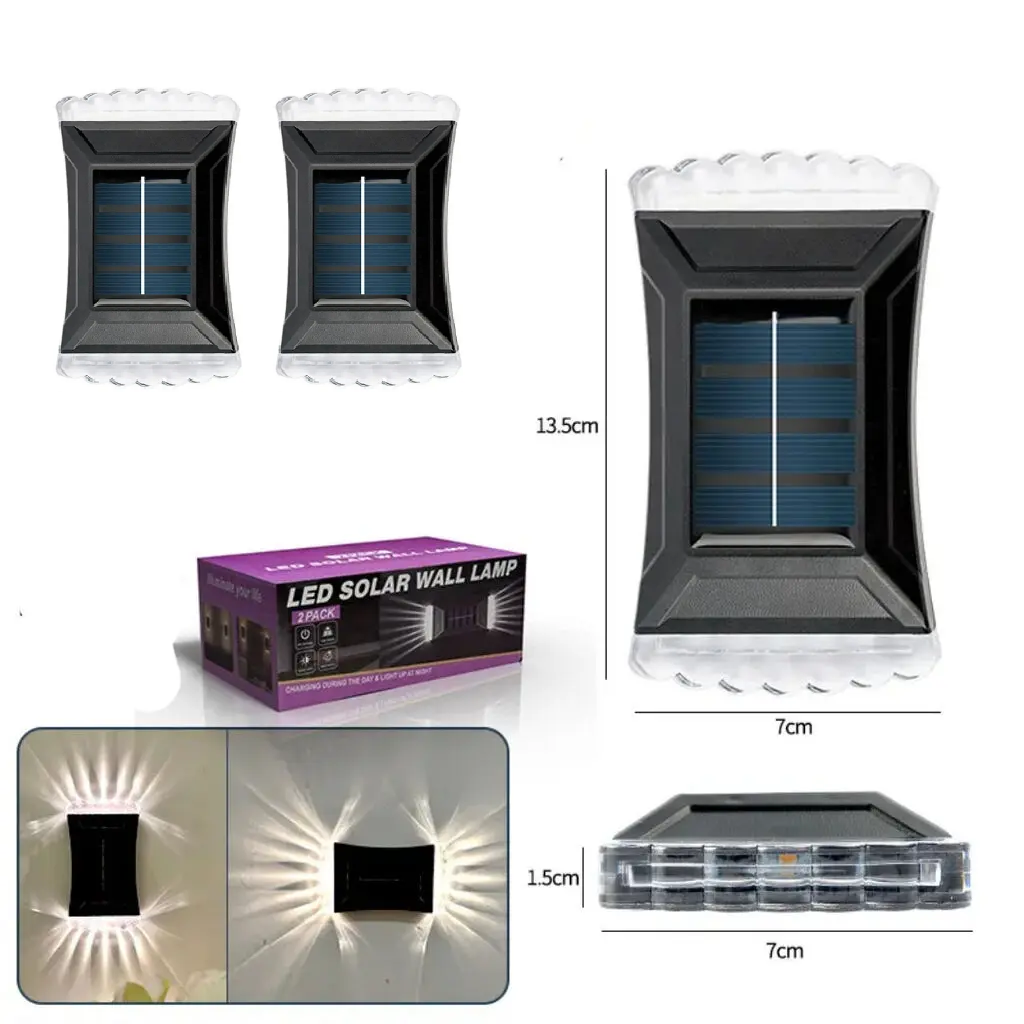 Unapredite osvetljenje vašeg dvorišta, terase ili ulaza uz set od 2 solarne zidne lampe koje kombinuju funkcionalnost i moderan dizajn. Savršeno rešenje za spoljašnje prostore bez potrebe za kablovima i dodatnim troškovima električne energije ⚡