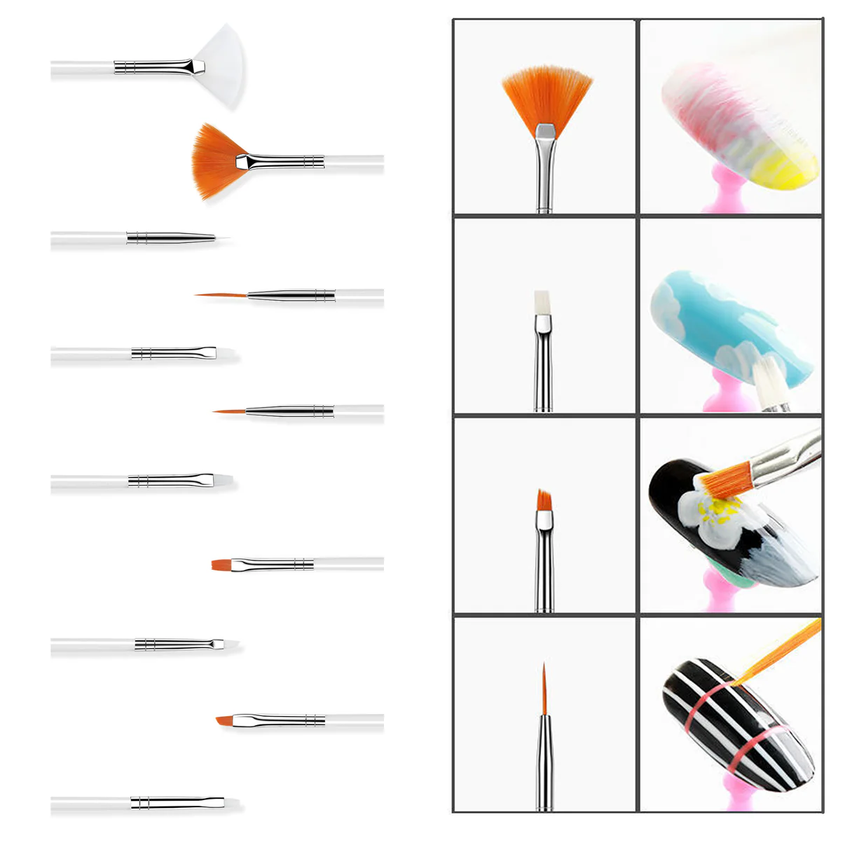 Unesite čistoću i preciznost u svoj rad sa noktima uz profesionalni set belih četkica. Savršen za nail art, izgradnju noktiju i crtanje detaljnih dizajna, idealan i za početnike i za profesionalce koji žele besprekorne rezultate.