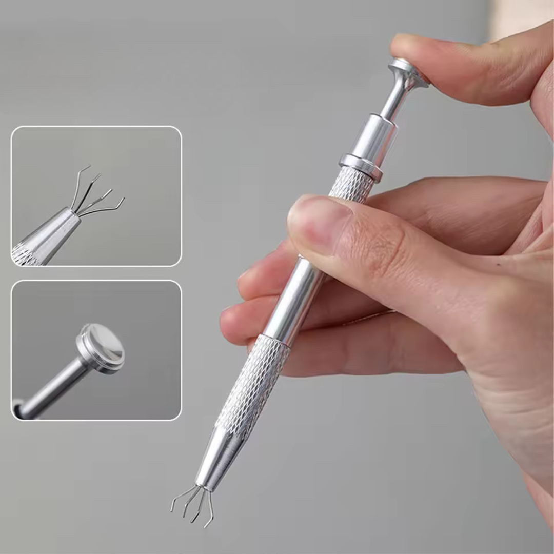 Metalnu hvataljku – kvalitetna, čvrsta i elegantna drška koja omogućava precizno hvatanje sunđera bez prljanja ruku i noktiju. Drška je dugotrajna i jednostavna za upotrebu, čineći svaki korak lakim i čistim.