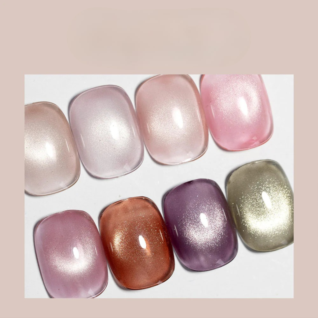 Otkrijte sofisticirani baršunasti sjaj sa Shimmer Velvet Collection! Ova kolekcija donosi osam luksuznih nijansi sa mekanim, svetlucavim finishom i 3D cat eye efektom, koji se lako kreira uz priloženi magnet. Savršen set za sve koji žele da njihovi nokti izgledaju elegantno i jedinstveno.